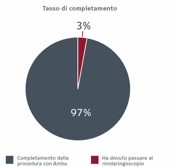 I medici sono riusciti a completare la procedura con successo con aScope 4 RhinoLaryngo nel 97% delle procedure. Per l'85% delle procedure, i medici hanno dichiarato che il rinolaringoscopio monouso potrebbe sostituire quello riutilizzabile.